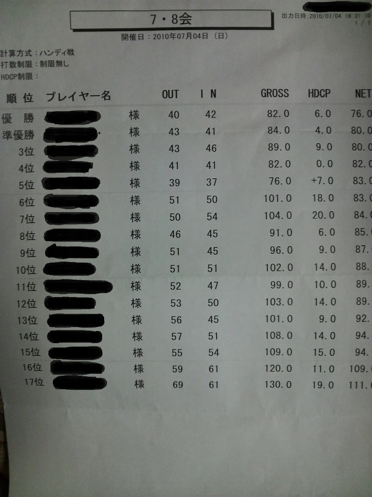 今日は、ドライバーのあたりがイマイチだったけど、結構パットが決まっていて