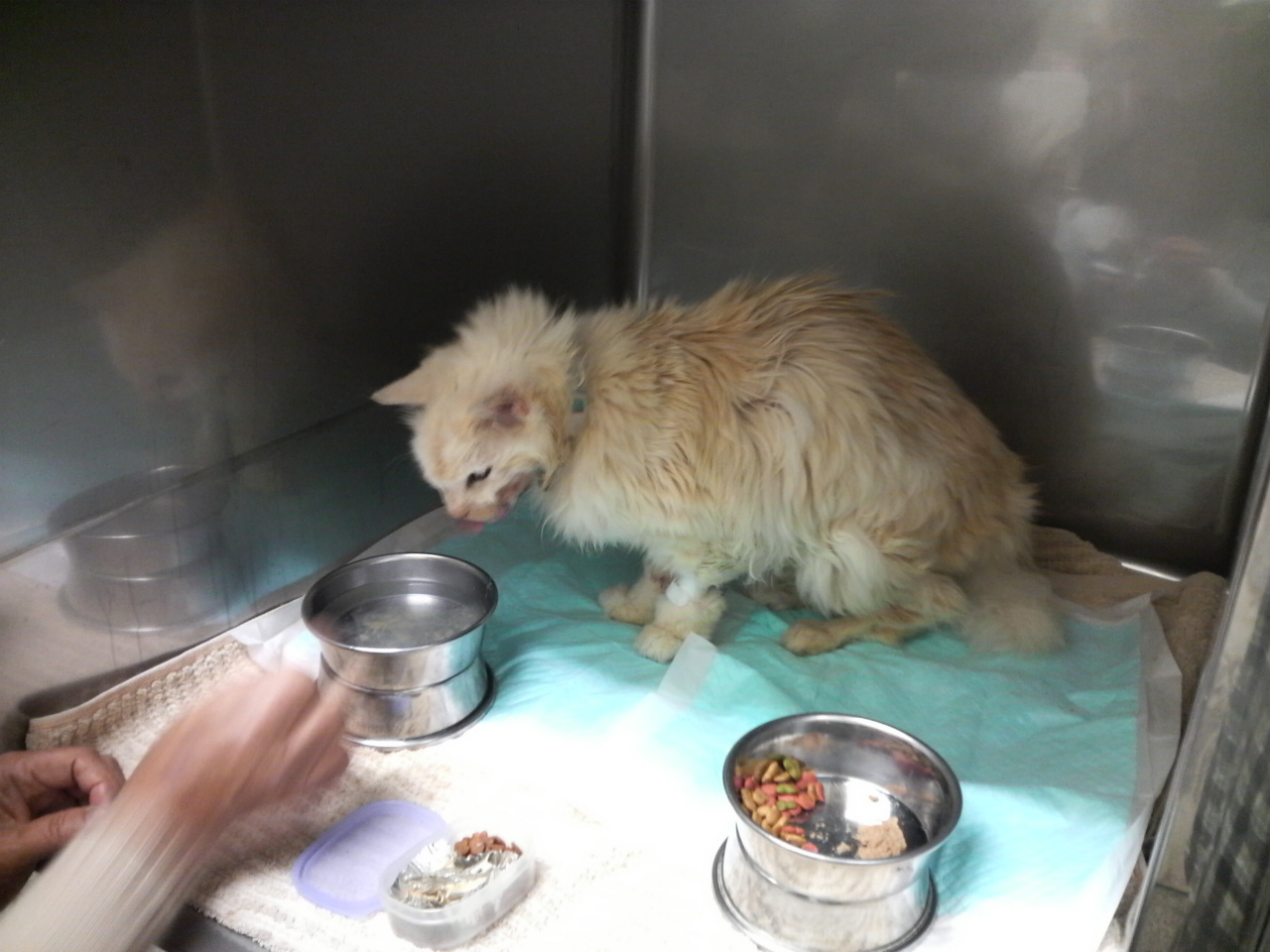 病院で出されたペースト状の餌を少し食べていたみたいで、起き上がって