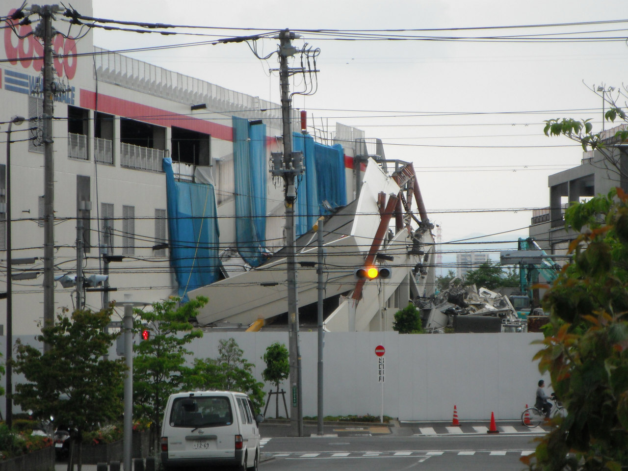 「日本における各コストコ倉庫店の建物および駐車場は、地震後、