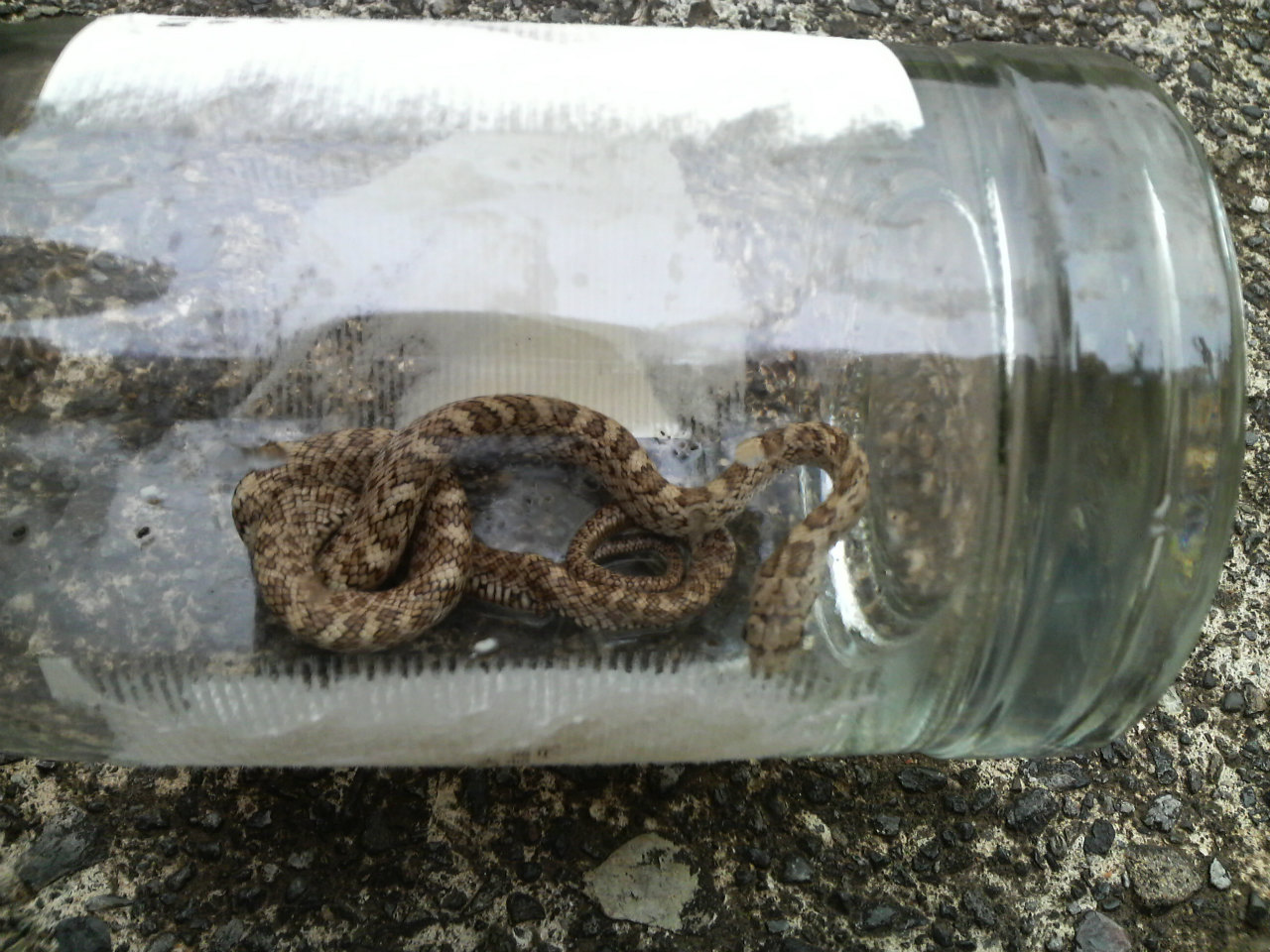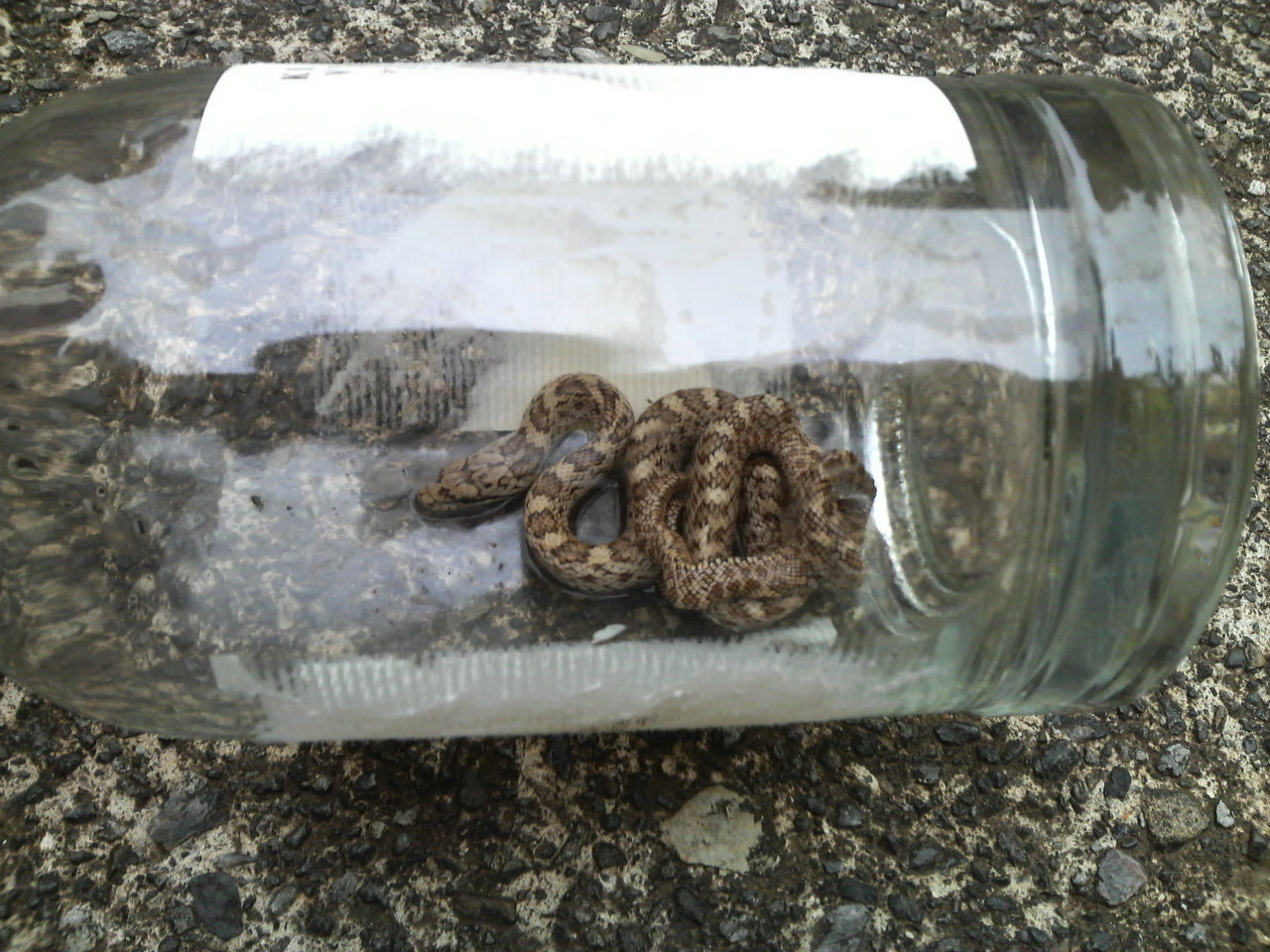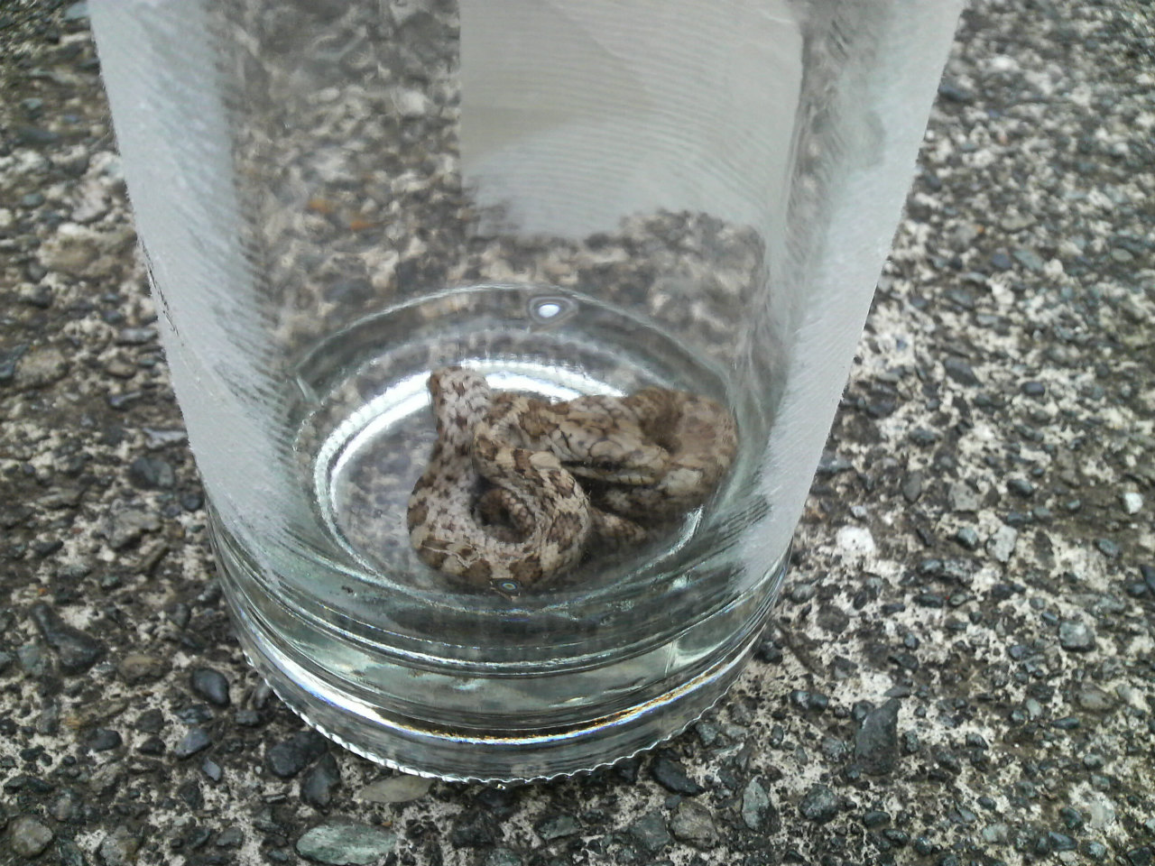 捕まえてビンに入れてみてみると、マムシの子供の様な模様でした。