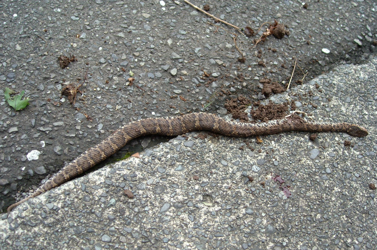 会社の総務がある建物の、すぐ前に駐車場が有るのですが、その駐車場から一段下がった所にマムシがいたと騒いでいました。