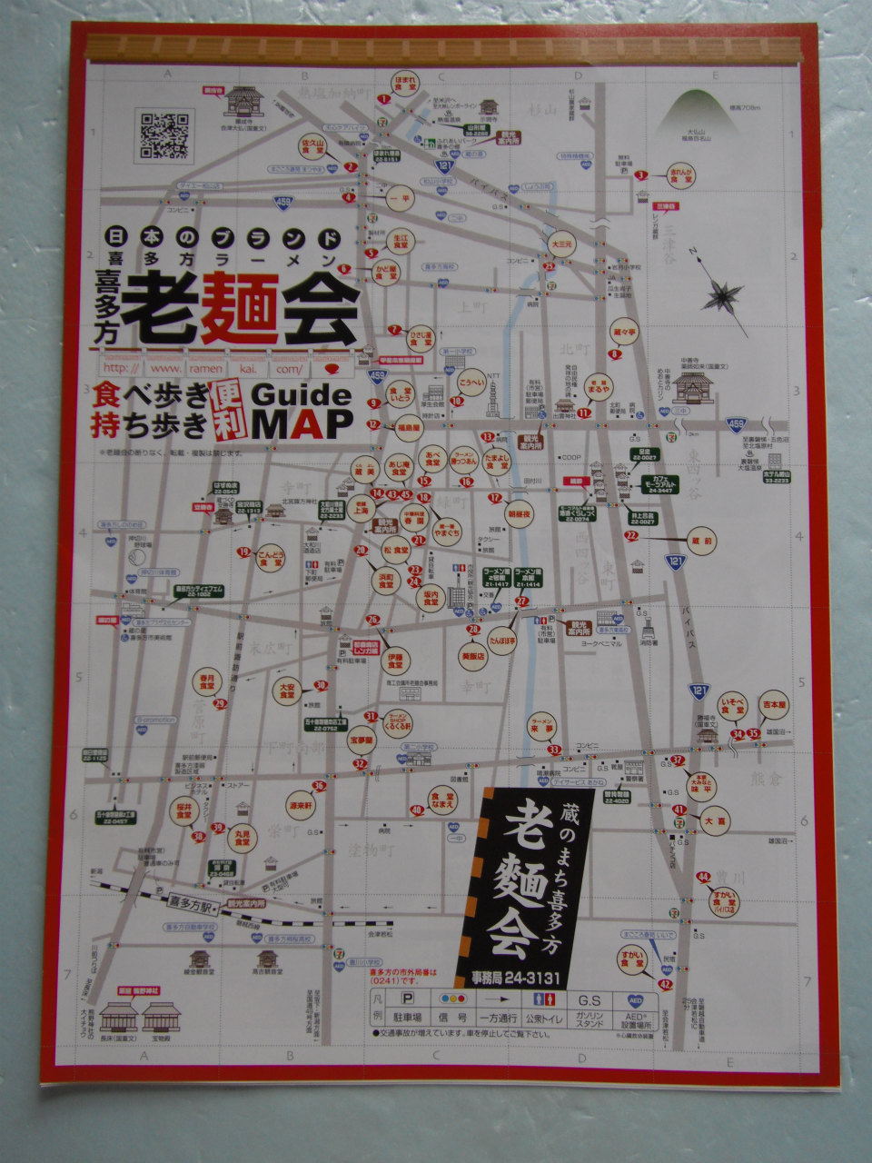 左は、喜多方ラーメンマップで「老麺会」に加入している店を紹介しています。