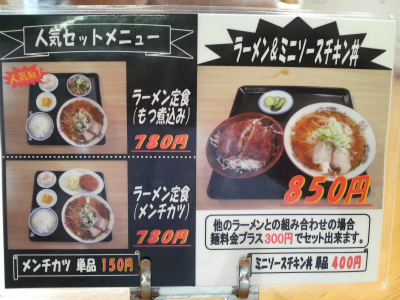 「ラーメン定食(もつ煮込み)」です。