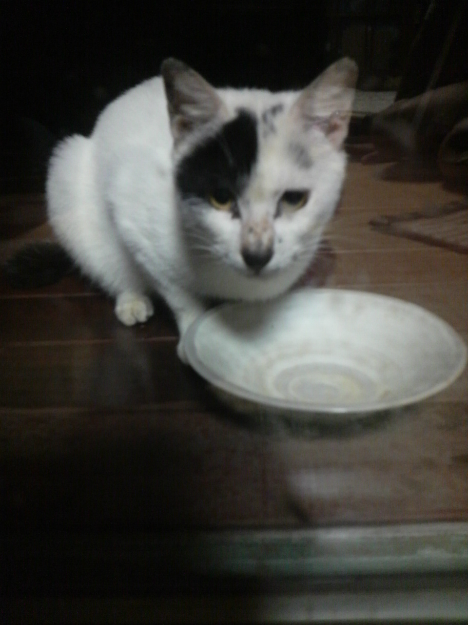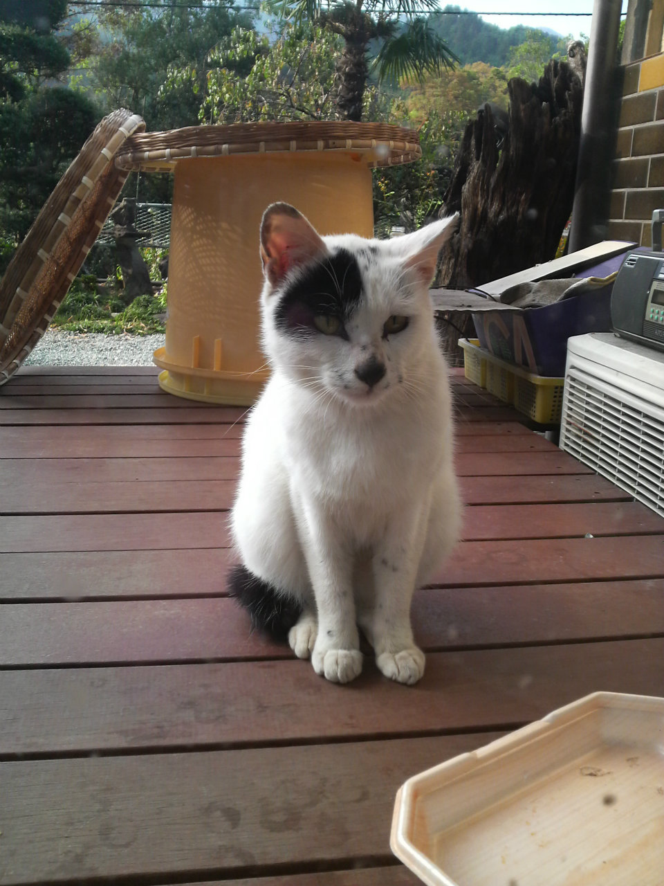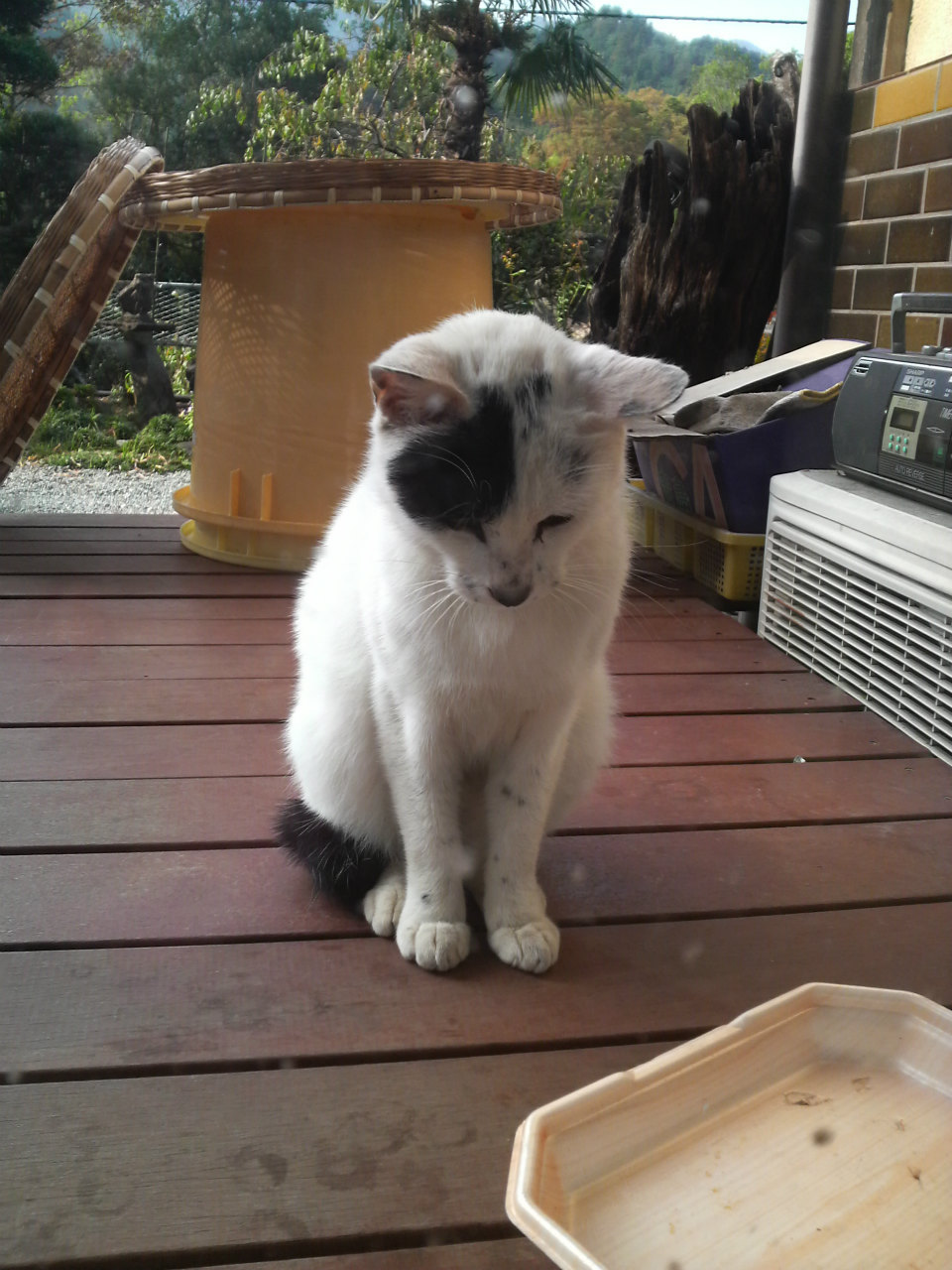 ある時、ウッドデッキに散らばっていた、ネコのエサが無くなっていたので、ワザとエサを置いてみると、野良猫が食べに来ていました。