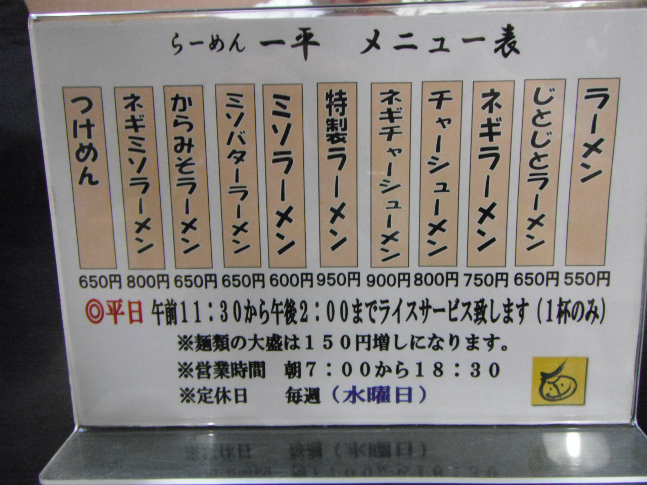 つぎは、「らーめん 一平」さんです。(老麺会に入っています。)