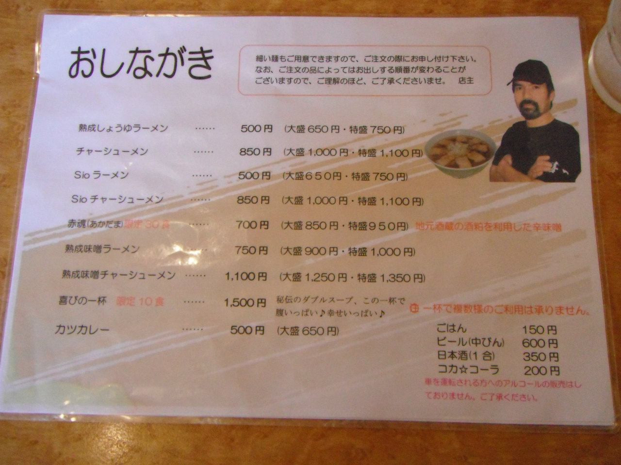 まずは、「まこと食堂」さんです。(老麺会に入ってます。)