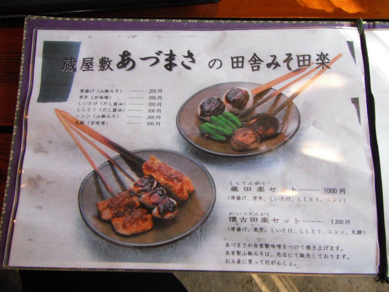 蔵田楽セットは、喜多方で田楽が有名らしく、そばを置いてある所には