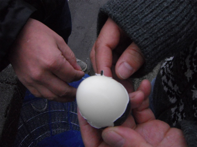 早速黒タマゴを購入しました。外側は真っ黒、殻を剥くと白いです。