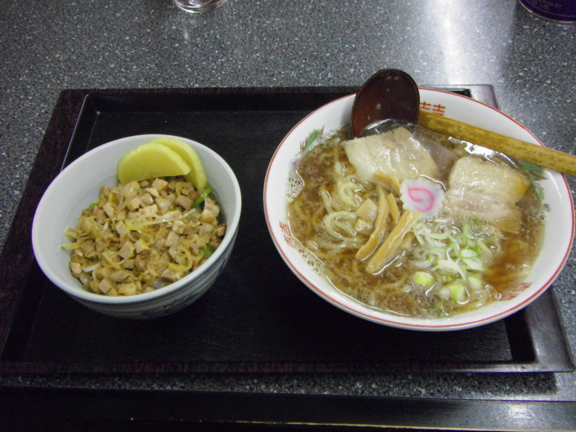 とりあえず、ラーメンとミニチャーシュー丼のセットを頼みました。