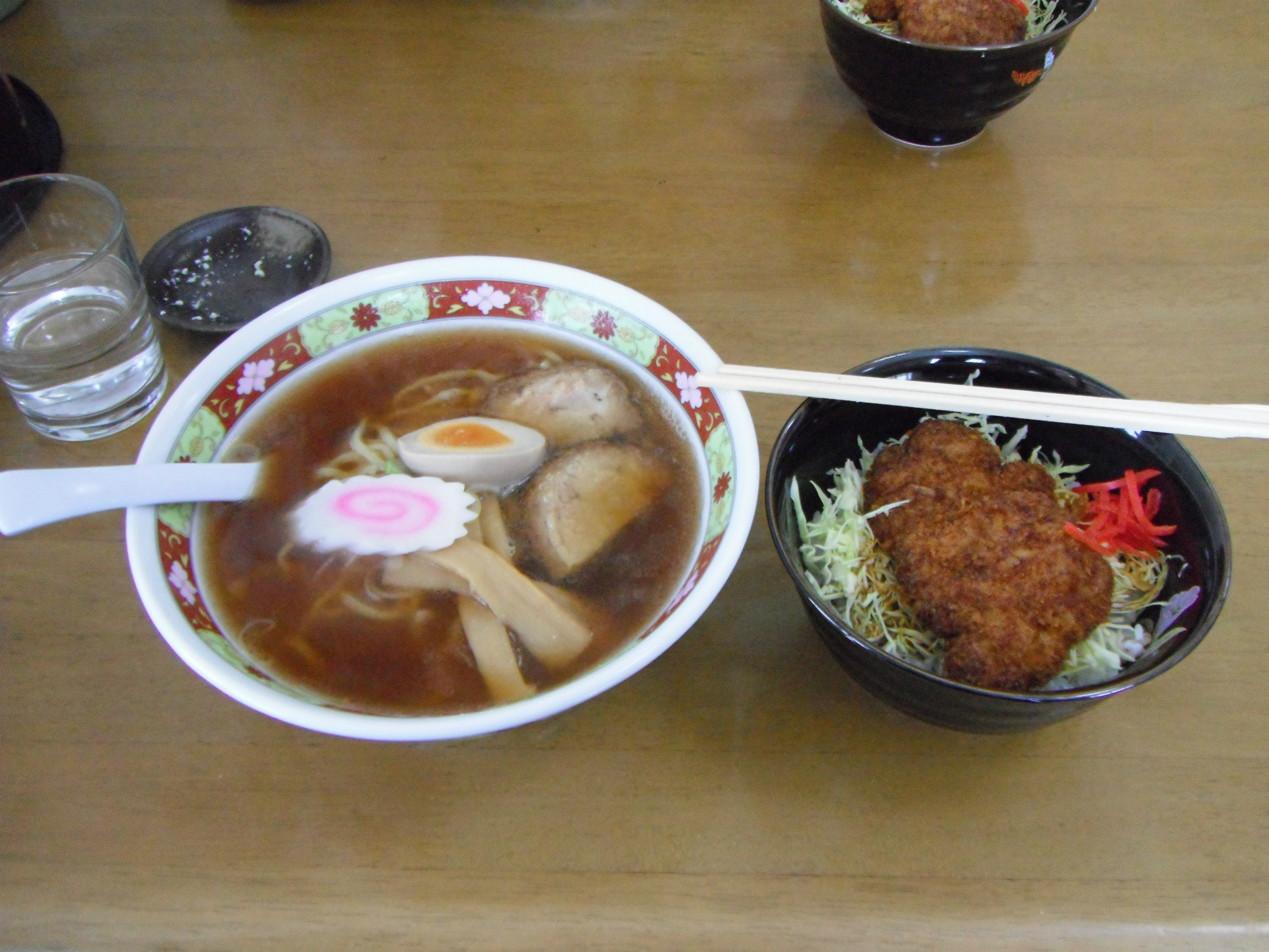 今回は醤油ラーメン(2回目)をチョイスしてミニソースカツ丼です。