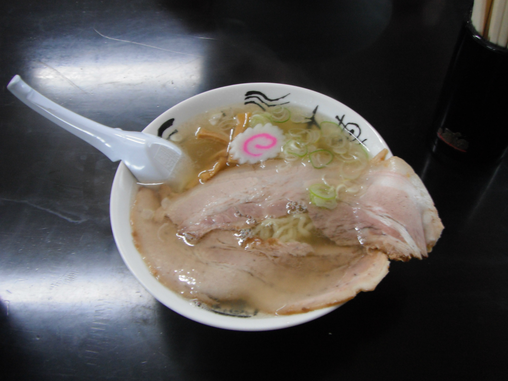 前回は醤油だったので、本日は「塩半面チャーシュー」を注文しました。