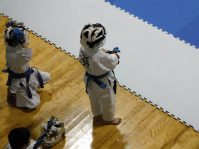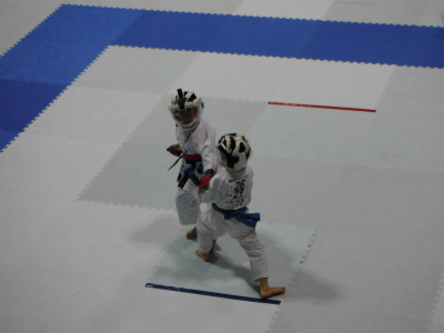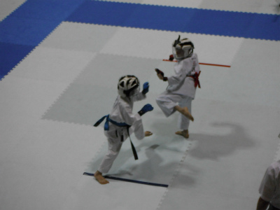 組み手は、ポイント制で4ポイント差で勝利となります。