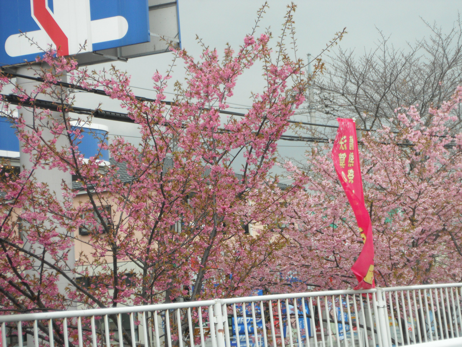 出てすぐに国道246号が混んでいた為ゆっくり走っていると、左側に桜が!