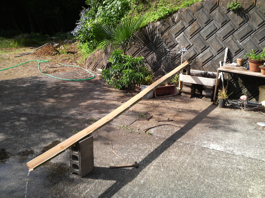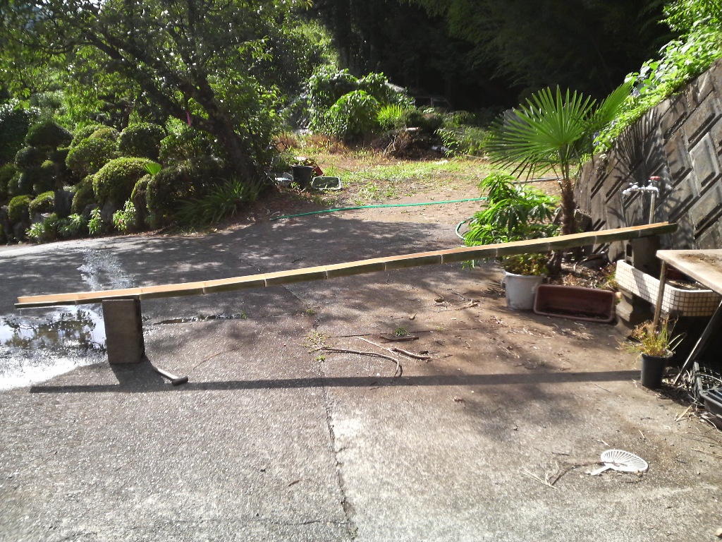 ので、土曜に家の裏の竹を切り、半分に割り(これが結構難しく、半分に割った