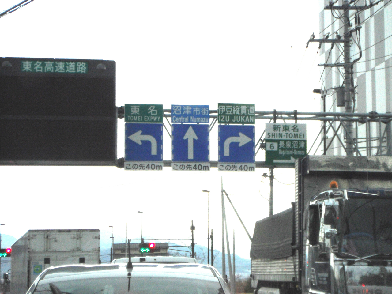 長泉沼津ICです。 名古屋と東京分岐点です。 本線合流点です。