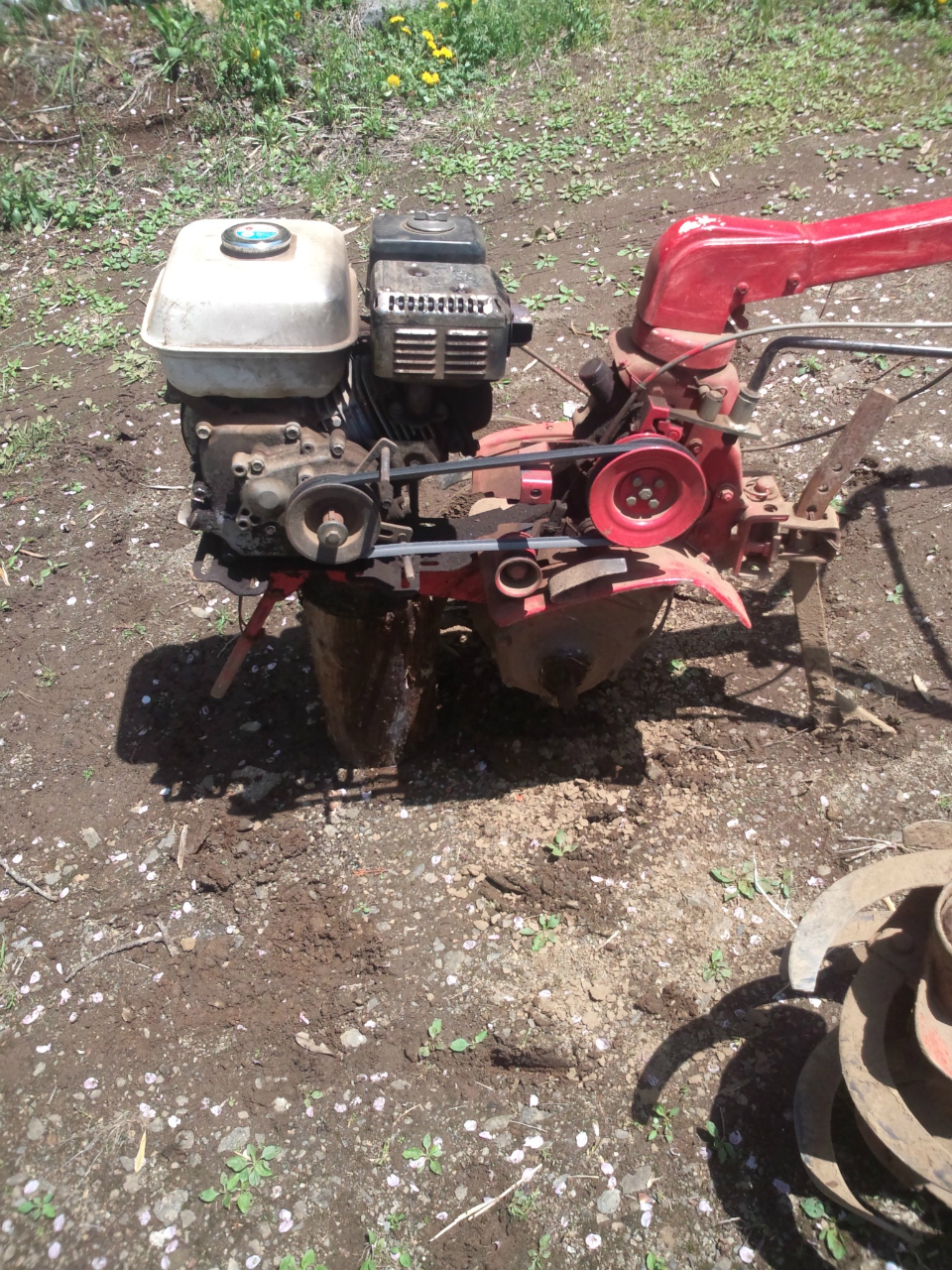 ここで、我が愛車3号(耕運機)の登場です。