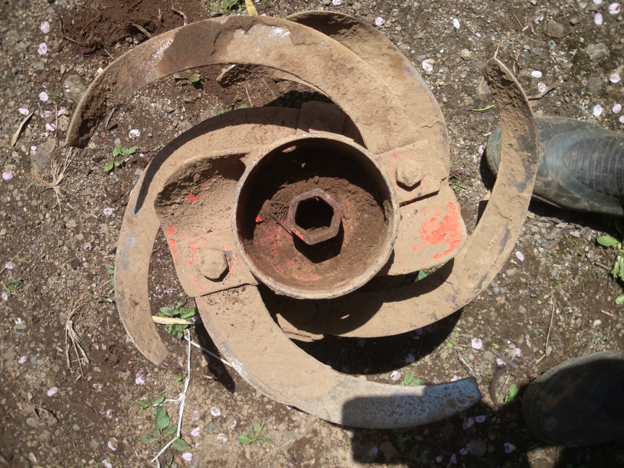 土を掘り起こす歯が外れてしまいました。