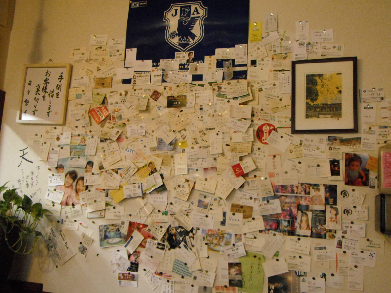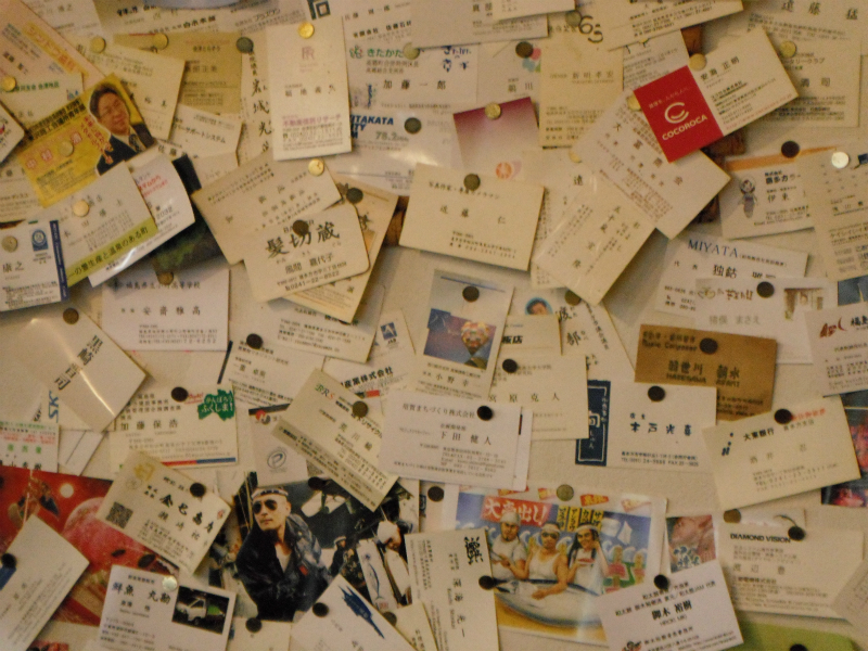 あっさりの醤油を注文しました。壁には来た人達の名刺がギッシリ!