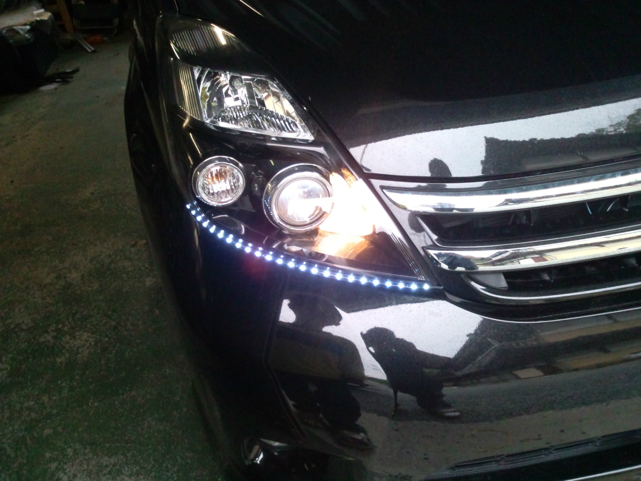 長さ400mmのLEDモールをヘッドライトの下に付けイメージチェンジを・・・