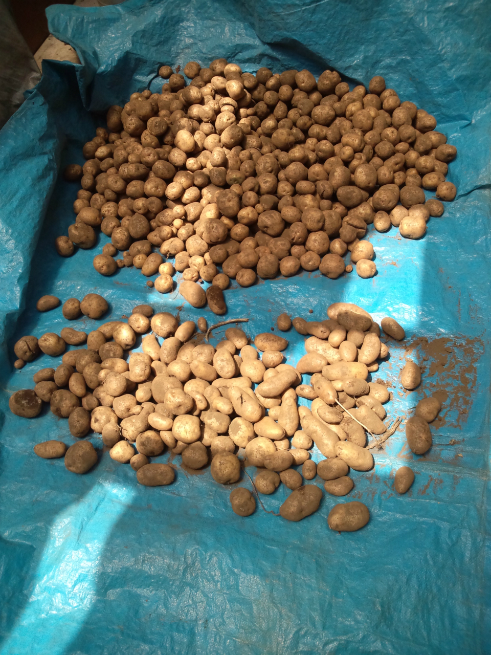 コンテナにメークインと男爵を半分ずつ入れて義兄の寿司屋と