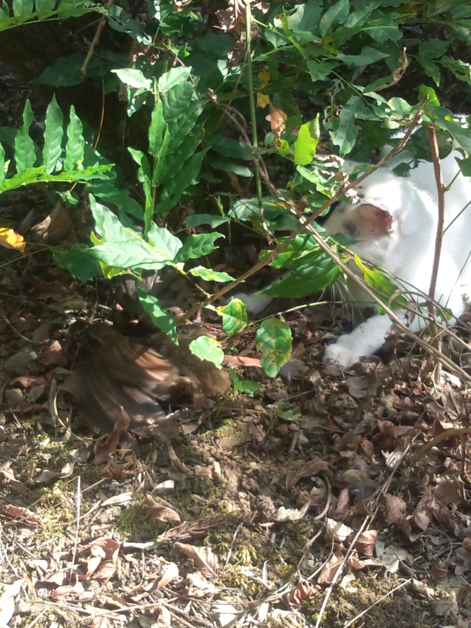 ふと、庭に目をやると居候ネコがなにやら、くわえている様な・・・?