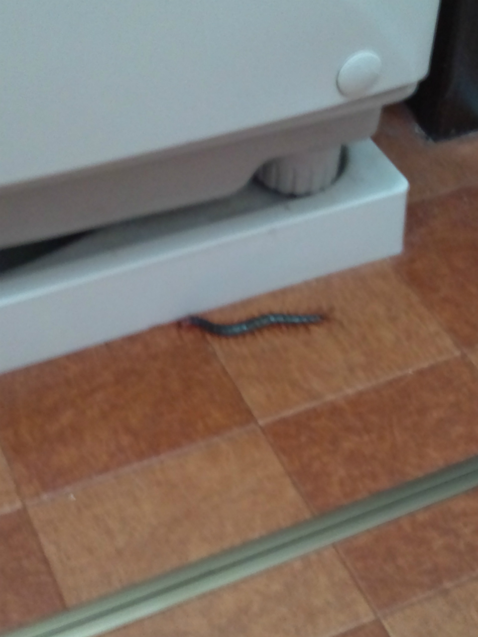前の床に黒く長い物体が・・・・・