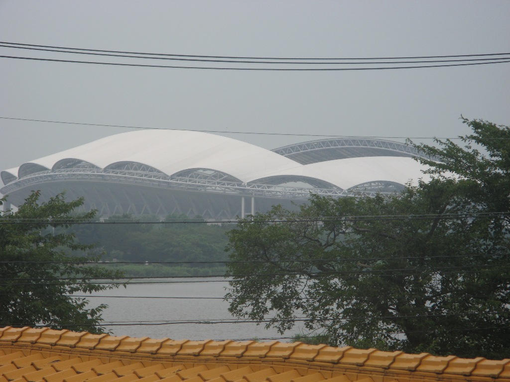 宿に帰ると部屋の外にビックスワンスタジアムが見えました。