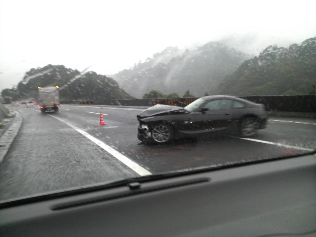 その出張の途中高速で事故がありました。