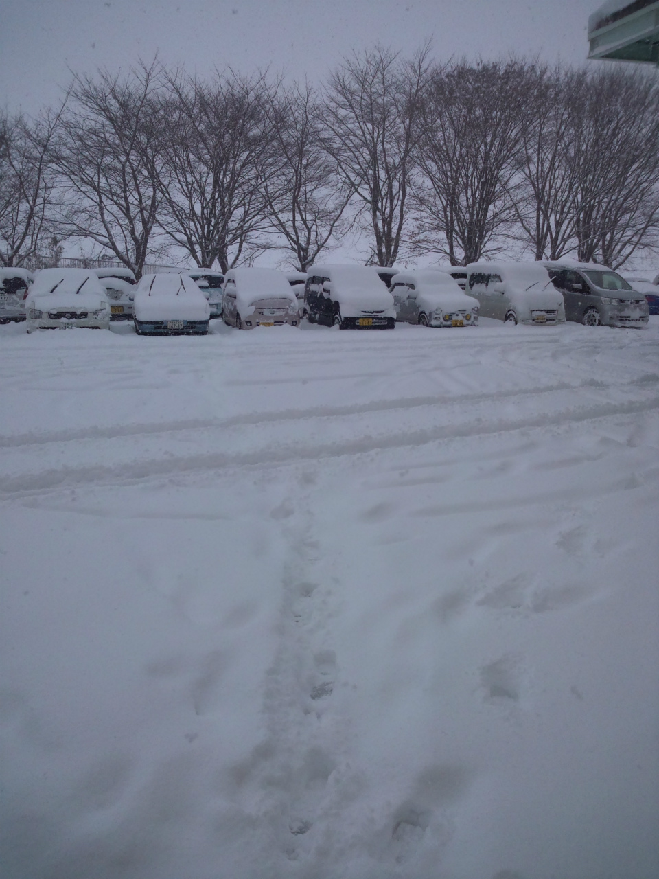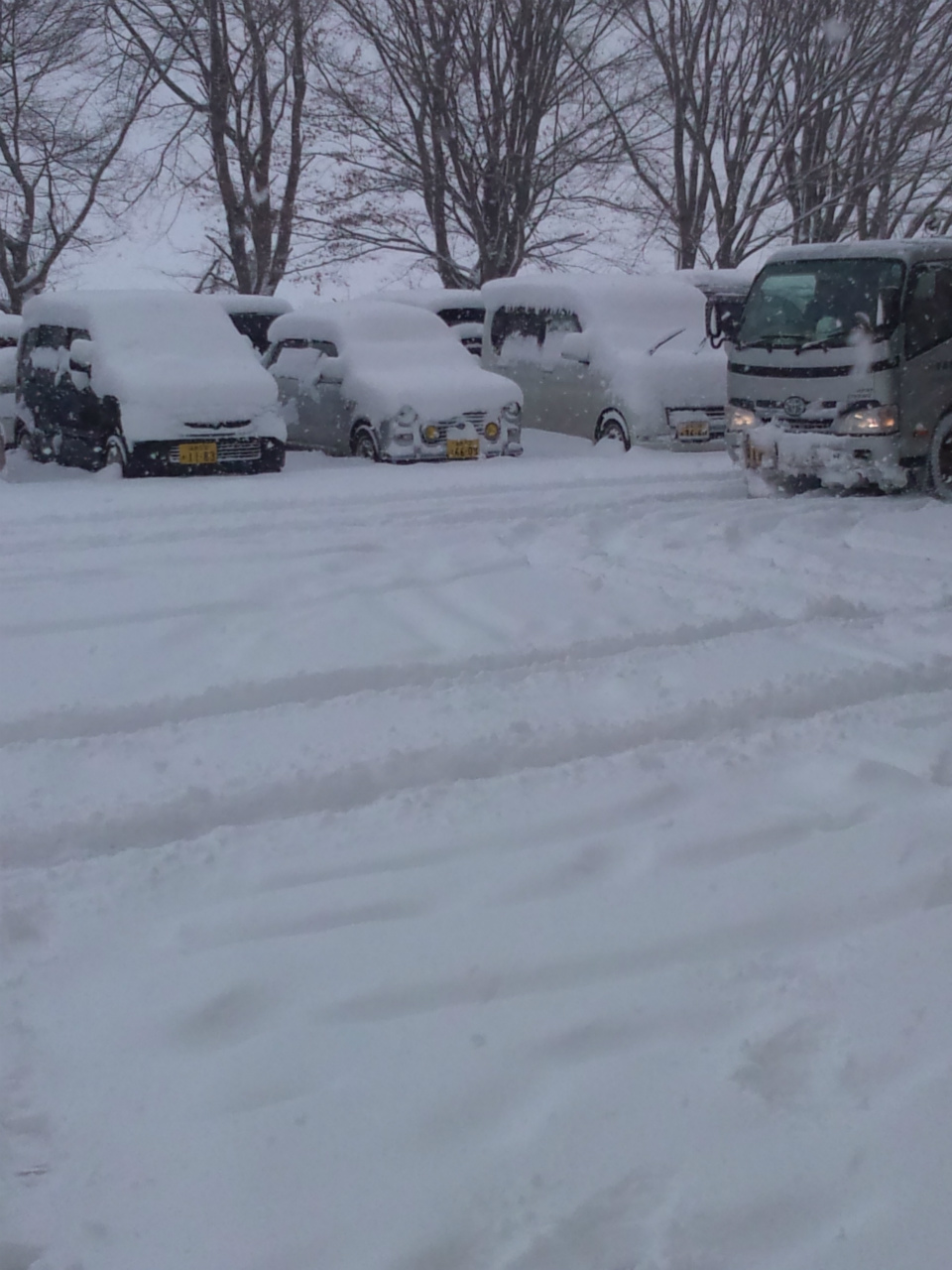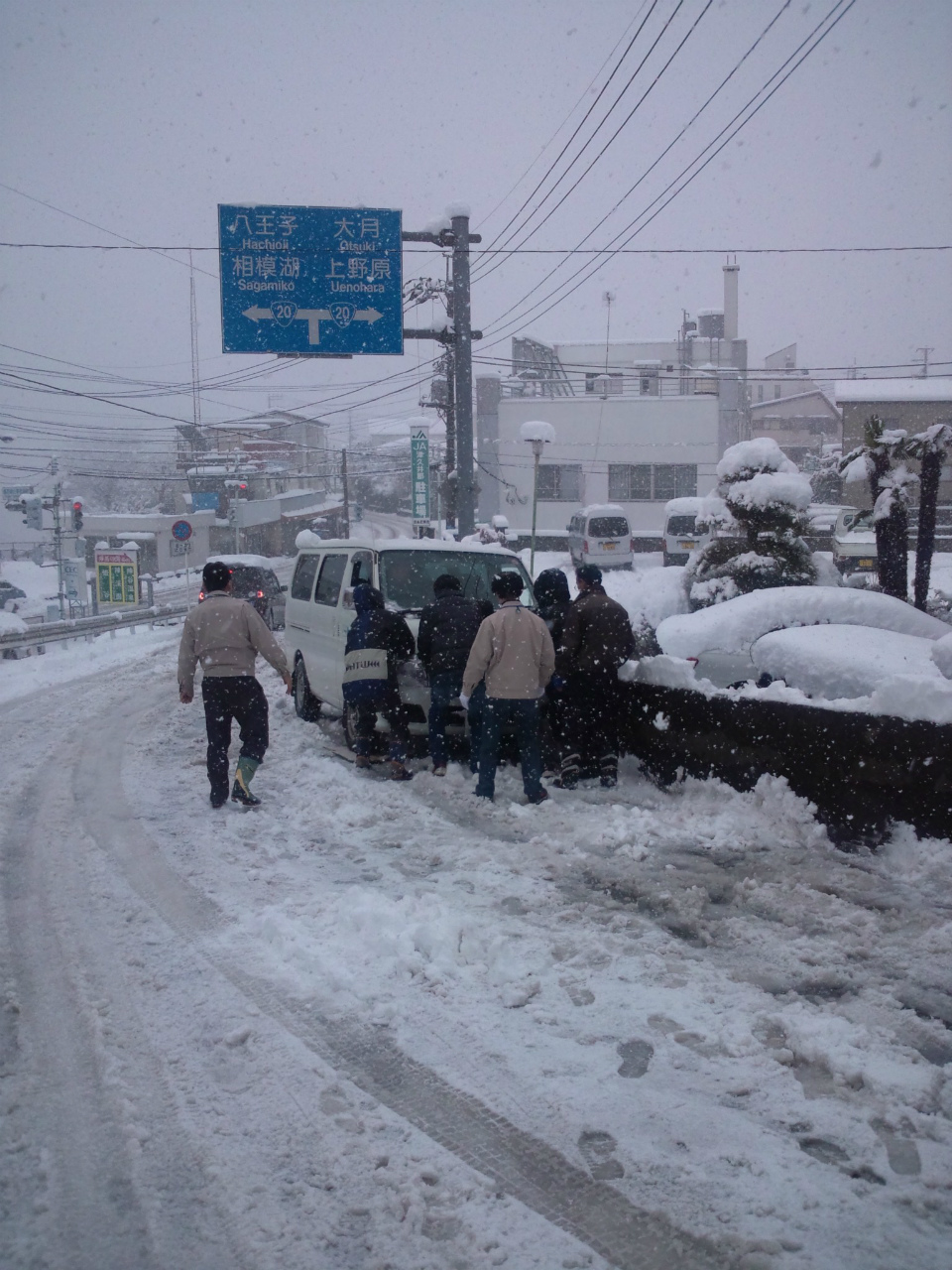 車をみんなで押し出して救助し、近くのJAの駐車場に置いて会社へ行きました。