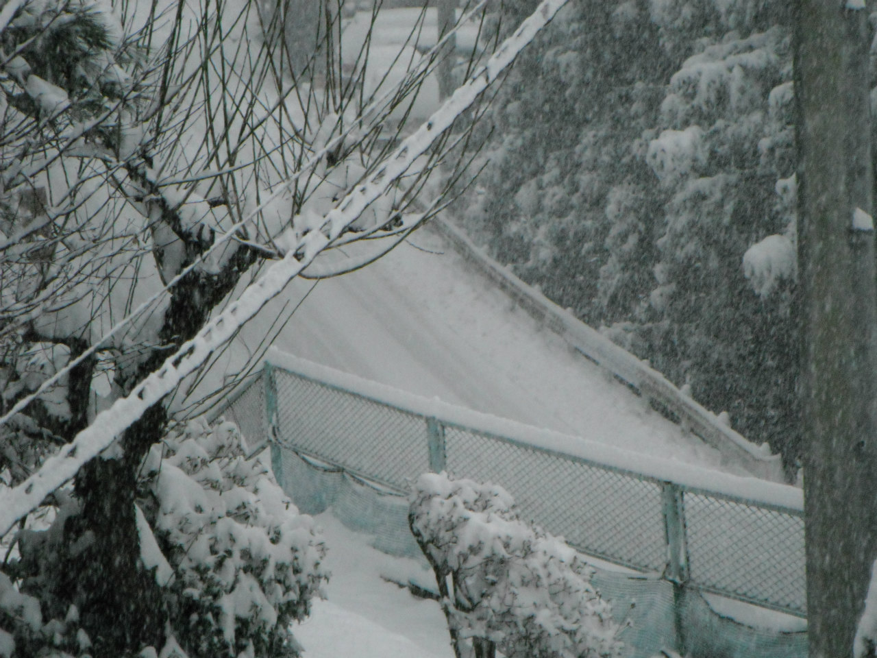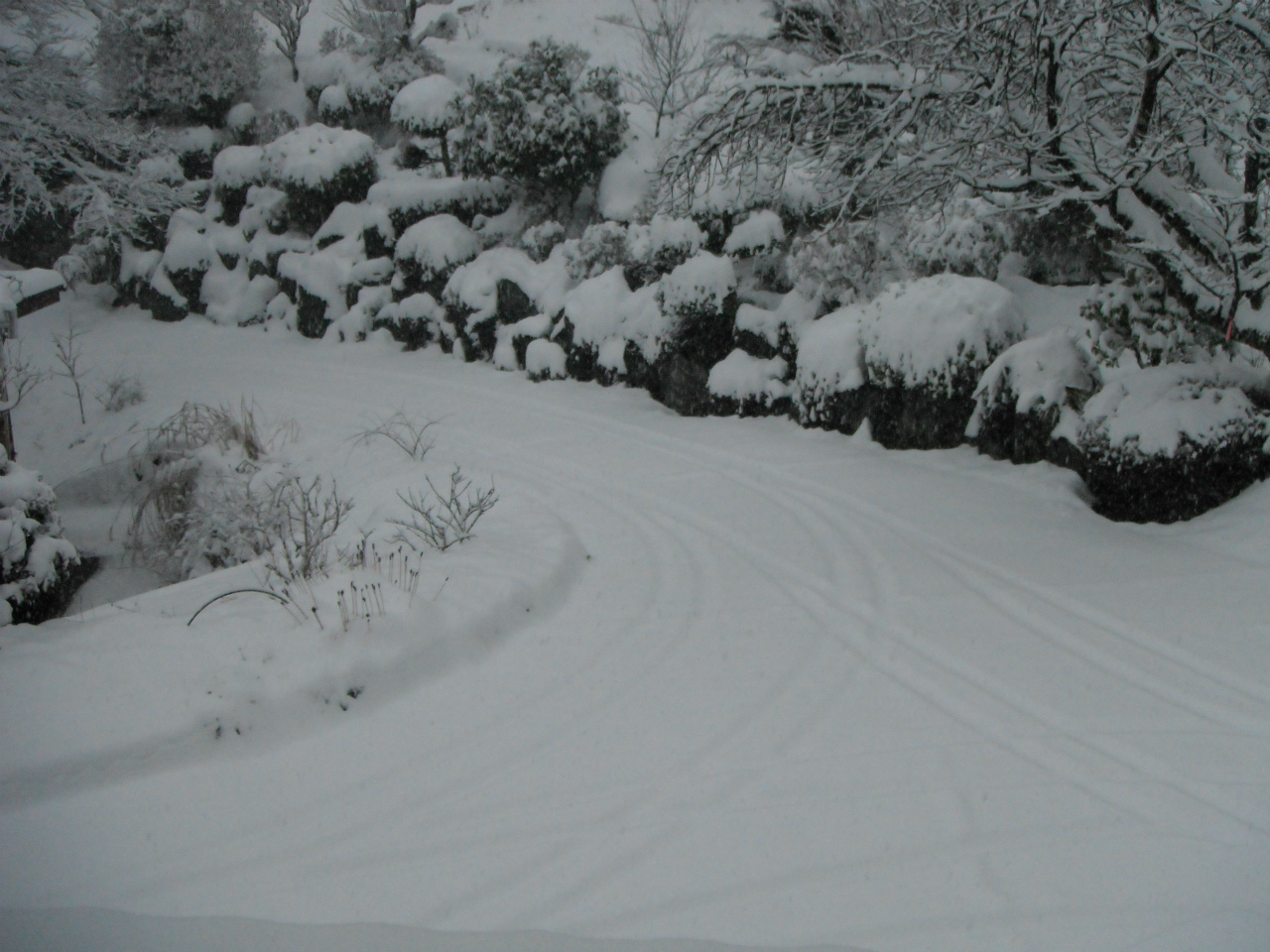 真ん中は、家から県道へ降りる道です。(積もってる~!